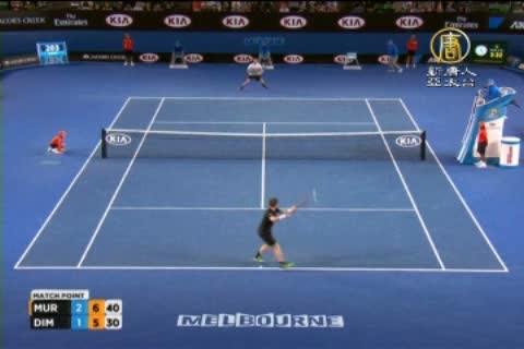 【新唐人亞太台2015年1月26日訊】來看到澳洲網球公開賽的最新消息,英國名將莫瑞,在男單第四輪中,與莎拉波娃男友、保加利亞球員迪米卓夫,兩人激戰四盤,莫瑞以6比4、6比7(5)、6比3和7比5獲勝,連續六屆澳網打進男單8強。