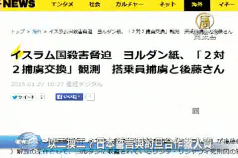 【新唐人亞太台2015年1月27日訊】真的是一波未平一波又起。日本政府正在積極搶救遭ISIS綁架的人質後藤健二,現在傳出ISIS除了要求約旦釋放被捕的伊拉克女炸彈客外,還加碼追加一名同樣被關押在約旦的男炸彈客。