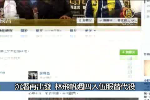 島國前進成員林飛帆在臉書預告,本週四確定要入伍服替代役。他說,近日決定暫時休學、提前入伍,給自己沉澱空間。同為島國前進發起人的陳為廷,在臉書轉貼歌手蔡琴的歌曲《望你早歸》,並附上哭臉的表情符號;另外,學者黃國昌也在臉書發文表示,「心中不捨、望你早歸」