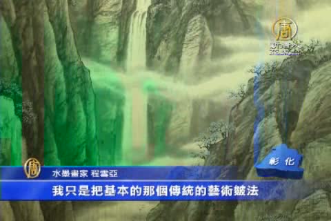 水墨畫家 程雪亞:「我只是把基本的那個傳統的藝術皴法,然後帶進素描的這種筆法,然後把它創造出來,像這個水的部分,所以我加一些顏料下去,所以看起來質感會比較真實。」