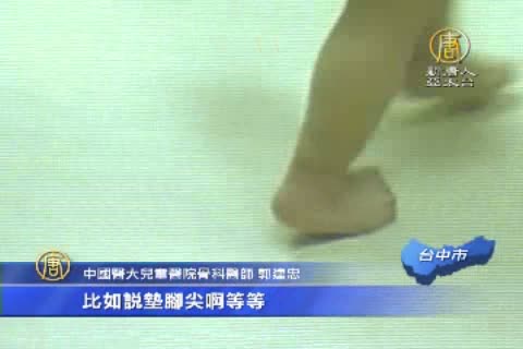 中國醫大兒童醫院骨科醫師 郭建忠:「家長都非常疼愛,都會想說給他最好的,像矯正鞋或者學步鞋等等,其實倒可不必,因為你如果給他一些支撐,他反而沒辦法有機會去訓練,反而可以讓他赤腳走路,讓他肌肉肌腱跟他骨骼發育變更好。」