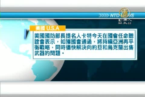 美國國防部長提名人卡特今天在國會任命聽證會表示,如獲國會通過,將持續亞洲再平衡戰略,同時儘快解決向約旦和烏克蘭出售武器的問題。