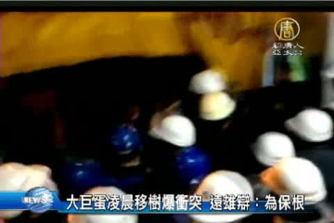 【新唐人亞太台2015年2月6日訊】大巨蛋工程,遠雄集團今天凌晨2點多派出上百名員工,針對台北市光復南路和忠孝東路的路樹進行圍籬工程,引發現場護樹群眾抗爭,雙方爆發衝突,遠雄隨即在圍籬施工處築起人牆,才能繼續作業。護樹志工怒批,遠雄是拿郝市府時代的公文偷渡施工,但遠雄澄清,架設圍籬是為了保護樹根,公文則是柯文哲上任後才批准,一切依法施工。