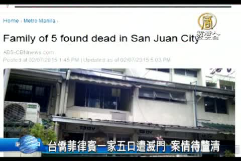 【新唐人亞太台2015年2月7日訊】來看到一則不幸震驚的消息,菲律賓ABS-CBN報導,台灣一家五口在菲律賓仙範市家中死亡,目前警方正調查命案原因。警方在屋內主臥室發現50歲男 子謝維洲,和他妻子的屍體,另外還有3名子女,年紀分別為18歲、15歲和12歲,警方在廚房流理台發現2張自殺紙條,懷疑是謀殺後自殺。死者謝維洲在遺 書中寫道,無力償債,決定帶走全家人,不過目前沒有查出作案方式與致死原因。