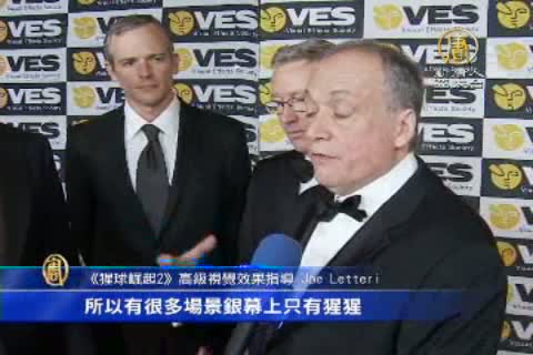 記者李姍:「我們在第13屆視覺效果協會頒獎典禮上,該獎是為表彰卓越的視覺效果藝術和電影、動畫、電視、廣告和視頻遊戲等方面的創新。」