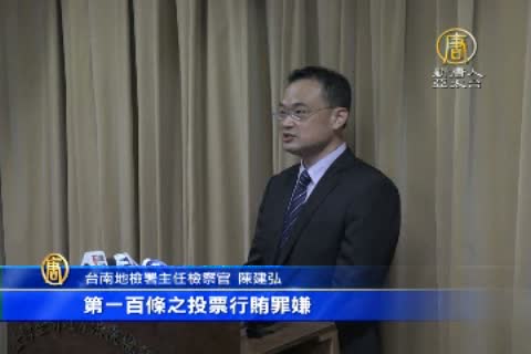 【新唐人亞太台2015年2月9日訊】台南地檢署偵辦議長選舉涉嫌賄選案,今天清晨(9號)檢方向台南地方法院聲請羈押議長李全教等4人,另外有4人交保,台南地院從傍晚6點就召開羈押庭,目前仍在審理中,至於李全教昨天是在搭機到中國廈門之前,被檢方攔下,是否有逃亡的疑慮,檢方以偵查不公開為由,拒絕回答。