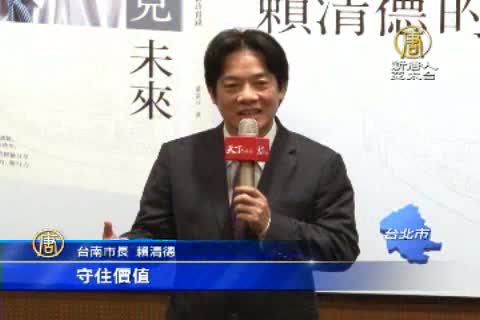 【新唐人亞太台2015年2月9日訊】議長捲入賄選風暴 引發市長抵制議會的 台南市長賴清德,今天特地北上舉行新書發表,台北市長柯文哲也到場力挺,吸引大批媒體到場關注,柯文哲讚賴清德勤奮,還笑稱以後決定颱風假要學習賴清德,早上五點再決定,賴清德也談從政心境,認為政治人物最重要的原則是真誠,以及腳踏實地。