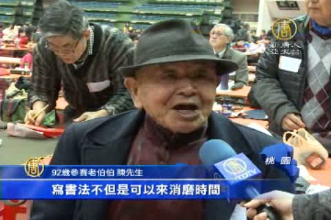 【新唐人亞太台2015年2月9日訊】過年到了,很多人喜歡自己提筆寫春聯,桃園日前春聯書法比賽,參賽民眾現場揮毫,相當熱鬧。