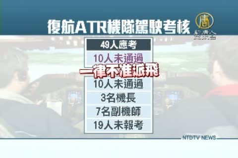【新唐人亞太台2015年2月11日訊】復興航空七個月內,就發生兩起空難,因此民航局召回復興ATR機隊駕駛重訓,經過四天考驗,今天第一階段口試出爐,49人應考,不合格率高達兩成,民航局明確指出,未通過考核者,一律不准派飛。