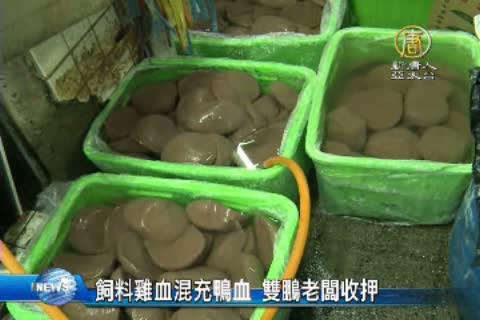 【新唐人亞太台2015年2月13日訊】又有黑心食品,全台鴨血最大供應商雙鵬公司,疑似以飼料行的名義,向屠宰場購買大量供飼料用的肉雞血之後,滲入食用鴨血中混充鴨血原料。台中地檢署檢察官昨天搜索北、中公司,傳訊負責人彭光謚等4人到案說明。凌晨3點,檢察官依詐欺、違反《食品衛生安全管理法》,有串證、湮滅證據之虞,向法院聲押獲准。