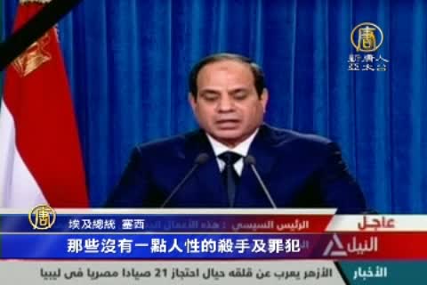 2015-02-16 13:47:14極端組織「伊斯蘭國」,ISIS再度釋出處決影片,將21名在利比亞工作的埃及基督教徒斬首,埃及總統塞西強力譴責,埃及全國默哀七天。IS武裝分子將21名身穿囚服的埃及人質帶往利比亞的海灘,殘忍地斬首示眾。埃及總統憤怒地說「保留以任何方式,懲罰這些凶手的權利」,另外,埃及全國上下也默哀七天,埃及政府呼籲民眾不要前往利比亞。