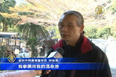 溫泉休閒農場董事長 陳敏德:「我寧願用我的溫泉池,去將就環境樹木,我不會把樹木砍掉,所以讓這個環境,大家覺得說進來好像是一個很自然的公園。」