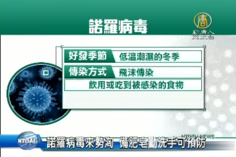 【新唐人亞太台2015年2月25日訊】知名景點爆發諾羅病毒,疫情創下四年來新高,進入高峰期。尤其諾羅病毒常發生在群眾聚集之地,因此適逢開學,接著又是228連續假期,現在是人心惶惶。不過,也不是完全對諾羅病毒無輒,只要徹底執行消毒措施,做好清潔工作,就能預防。