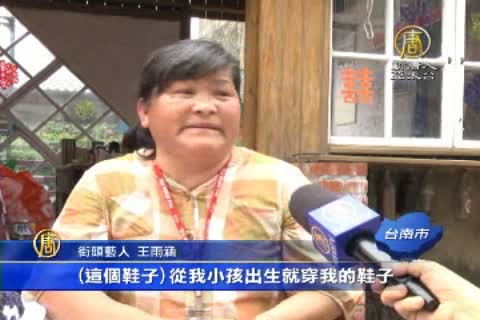 街頭藝人 王雨涵:「(做幾年) 33年,(這個鞋子) 從小孩出生就穿我的鞋子,小孩已經長大了,昨天那個孫子又來,又拿去穿。」