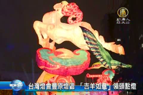 記者 詹詠茹:「好的主播,目前記者所在的位置,是2015年台灣燈會率先點燈的豐原主燈區,可以看到主燈前面已經擠滿了觀賞的遊客,稍早台中市長林佳龍帶領大家點亮了高達13.8公尺豐原主燈「吉羊如意」,跳躍的姿勢有「領頭羊」的意思,泰雅族圖騰的尾部有一隻青綠色的翠鳥,更顯得輕盈,搭上燈光秀,為台灣燈會揭開序幕。」