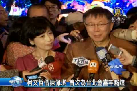 【新唐人亞太台2015年2月27日訊】台北第十九年舉辦燈會,台北市長柯文哲,帶著妻子陳珮琪一起逛,點燈前現場下起毛毛雨,不過到點燈時就停了,今年主燈金喜羊,每隔三十分鐘就會上演一場聲光秀,有興趣前往花博公園賞花燈的民眾可以特別留意。