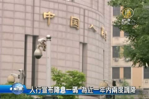 【新唐人亞太台2015年2月28日訊】大陸經濟放緩似乎真的煞不住了?大陸央行今天宣布,自3月1日起,金融機構存貸款基準利率,將下降0.25個百分點,一年期存款基準利率也下調至2.5%。而這也是近1年來,中國人民銀行2度降息,3度調降存款準備金率,向市場釋出流動性,續行寬鬆的貨幣政策。由於距去年11月降息之後,隔不到四個月,被外界認為用於緩解企業融資成本,並用於推廣利率市場化改革,不過也間接證實大陸經濟的放緩現實。