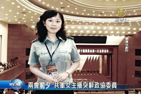 【新唐人亞太台2015年3月2日訊】中共「兩會」即將登場,解放軍知名女主播馮琳突然辭去全國政協委員,官方沒有交代原因。三十九歲的馮琳是央視《軍事報道》主播,中校軍銜。過去兩年,已經有三十四名全國人大代表和十三名全國政協委員因違紀違法終止或撤銷資格。馮琳在軍隊和央視掀起反腐風暴之際辭職,備受關注。