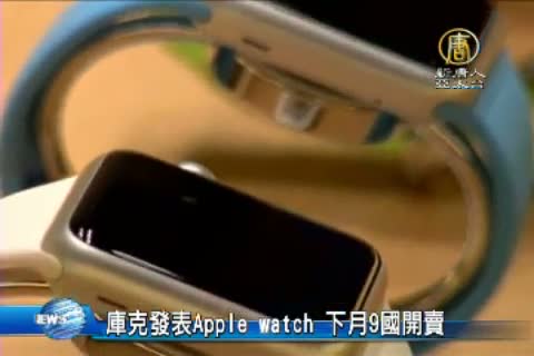 【新唐人亞太台 2015 年 03 月 10 日訊】國際財經焦點,蘋果智慧錶Apple Watch,台灣時間今天凌晨1時,在美國舊金山發表,3種型式可搭配多種錶帶,下個月將在美國等9國發售,台灣上市日期目前無法確定。但消息已經激勵華爾街股市,周一終場收紅。道瓊工業指數升幅達0.78%。