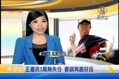 【新唐人亞太台 2015 年 03 月 10 日訊】旅美棒球好手王建民的東山再起之路,受關注;效力勇士隊的他,今天在大聯盟春訓第2次登場,對上前東家國民隊,投3局被敲2安打、無失分,另外,投出1次三振。