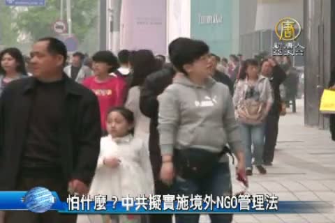 【新唐人亞太台 2015 年 03 月 11 日訊】中共人大發言人傅瑩日前表示,要通過立法,使境外非政府組織在中國的活動能夠有法可依。分析認為,中共此舉,是對目前僅存的少數非政府組織,進一步監控。