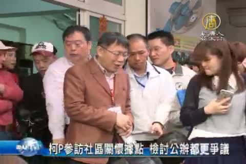 【新唐人亞太台 2015 年 03 月 13 日訊】台北市長柯文哲今天前往中正區,視察社區關懷據點,表示社區營造是未來市政推動的方向,而中繼住宅是做為公辦都更的一個重要前置,未來會加強與當地居民的溝通,才能更好的推行公共住宅政策。