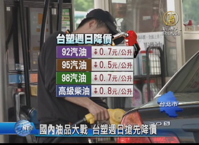 國內油品大戰升溫,台塑14日搶先宣布,調降下週油價,調降92汽油每公升0.7元、95汽油降0.5元、98汽油降0.7元,柴油每公升降0.8元,要讓民眾很有感。