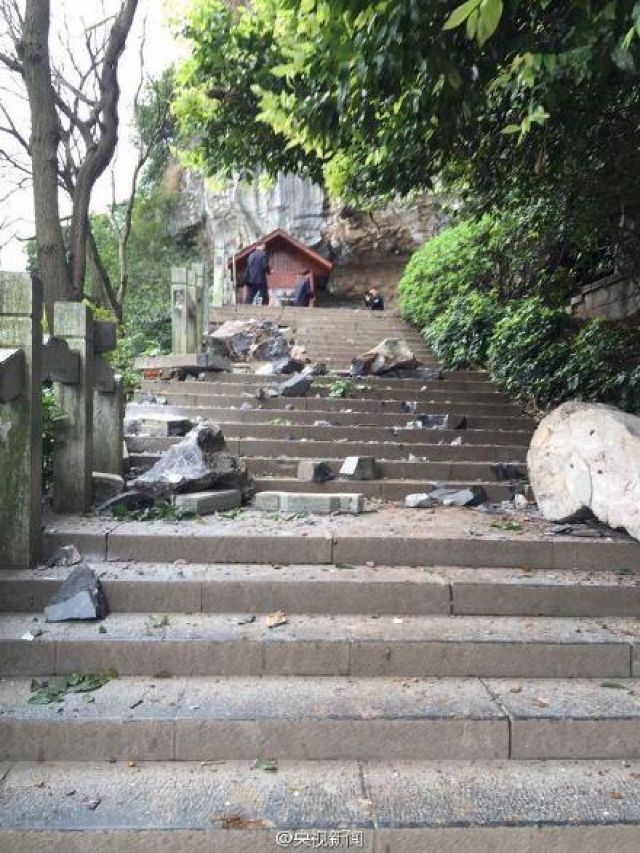 大陸廣西桂林疊彩山景區,驚傳落石砸死人意外。(圖/翻攝自騰訊網,2015.3.19)