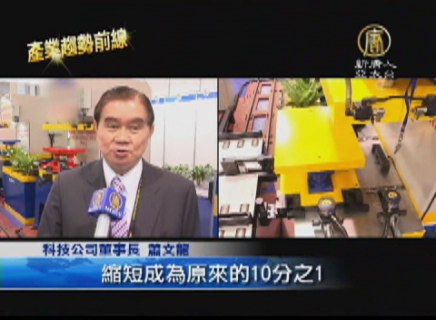 科技公司董事長 蕭文龍:「多種少量化的生產,所以它的換模的這個次數會比較,比以往更頻繁,所以,怎樣把換模的時間,縮短成為原來的10分之1,那剩下的10之9的時 間,多出來的10之9的一個時間,能夠拿來生產,那就是對一台機器的生產這個效率,就大幅的提高了,將近了10倍。」