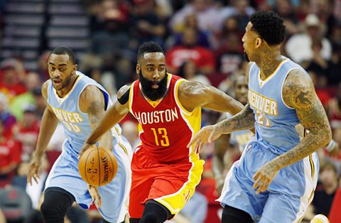 【新唐人亞太台 2015 年 03 月 20 日訊】火箭隊球星哈登,在主場對金塊的比賽中,奪下個人生涯新高的50分,成為火箭隊史上第6位單場破50分的球員。哈登25次站上罰球線,拿下22分。火箭以118比108擊敗金塊,只落後灰熊隊一場勝差。