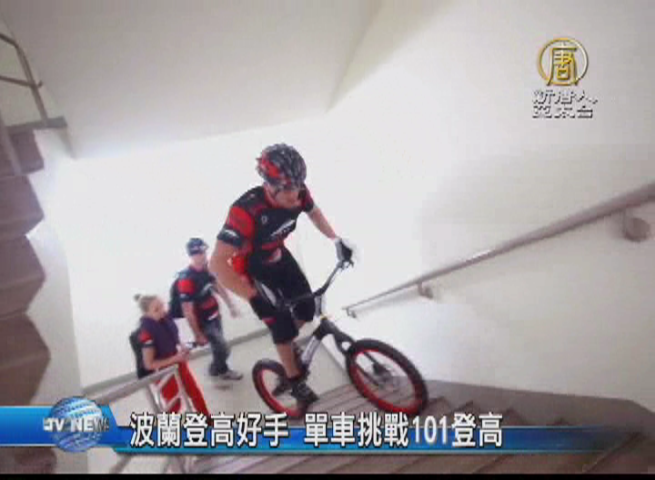 【新唐人亞太台 2015 年 03 月 22 日訊】台北101登高賽每年都吸引大批好手參加,這次更有來自波蘭的單車好手,不用雙腳,而是用單車挑戰101。目前他是單車登高大樓金氏世界紀錄保持人,今天來到101,挑戰3139階,成功再破金氏世界紀錄。
