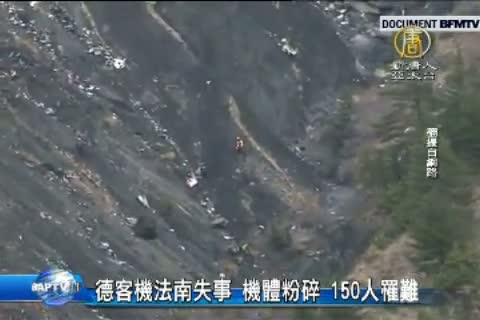 【新唐人亞太台 2015 年 03 月 25 日訊】國際間,再傳不幸空難事件,廉價航空「德國之翼」的空中巴士A320客機發生空難,機上150人不幸罹難,目前黑盒子已經找到,而德國總理梅克爾、與西班牙總理拉荷義也都到現場了解情況。