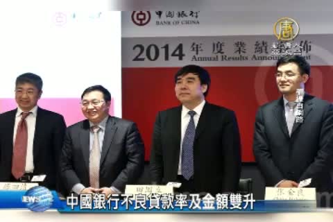 【新唐人亞太台 2015 年 03 月 26 日訊】再來關注,中國大陸的四大銀行陸續公佈業績,資產質素並不被看好。繼已經公佈業績的農行,出現不良貸款率和不良貸款額雙升後,中國銀行也是如此,不良貸款比率升到1.18%,增加0.22個百分點,不良貸款額則大增36%,超過1000億元人民幣。