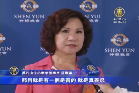 【新唐人亞太台 2015 年 03 月 26 日訊】關心神韻藝術團在台演出消息,上週末(21日)在台中的演出,一票難求。完美的演出讓企業家莊鴻銘伉儷相當感動;還有企業家莊惠寧表示,每年都應該來看神韻演出。