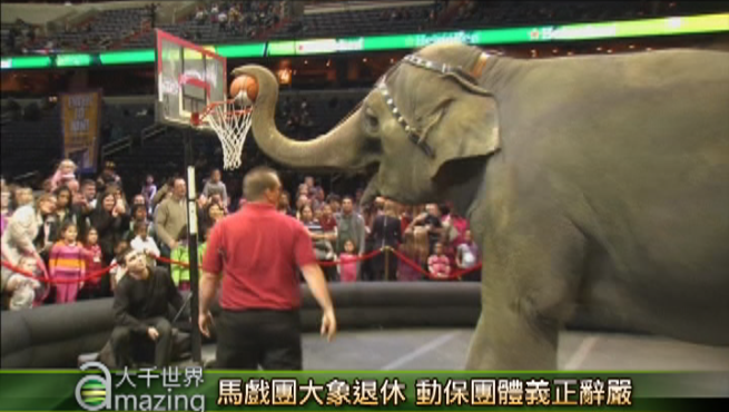 【新唐人亞太台 2015 年 03 月 29 日訊】在美國馬戲團裡面,大象一直是一個搶眼的表演,但是最近美國著名馬戲團Ringling Brothers即將裁撤大象表演,而動保團體也嚴厲的指出馬戲團對待動物的不正確方式。