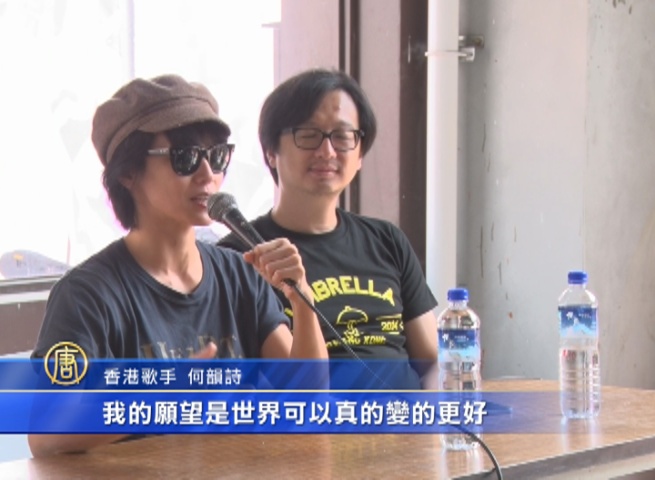 【新唐人亞太台 2015 年 03 月 29 日訊】香港雨傘運動滿半年,擁有影響力的歌手何韻詩今天(29日)下午,出席高雄大港開唱「大是大非」講堂,暢談參加香港雨傘運動的心路歷程,現場還有遠從大陸來的粉絲現身相挺,讓何韻詩很欣慰,她希望世界可以變的更好,需要每個人傳達世界正在發生的真相,給中國朋友知道。
