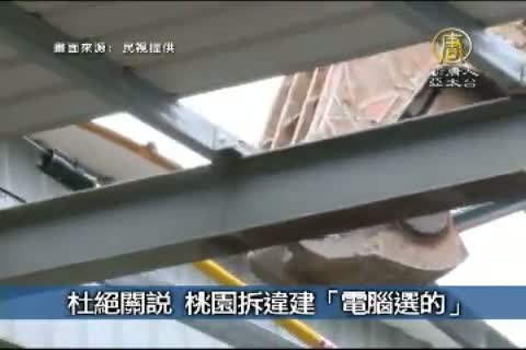 拆違建,桃園市府拆除大隊每天一早,用電腦隨機挑選「拆除目」標,電腦選中就立刻出發,對拆除地點更是保密到家,杜絕任何關說,也避免發生衝突,首波拆除達成率75%。