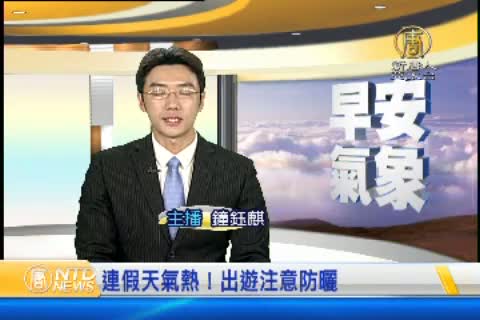 【新唐人亞太台 2015 年 04 月 03 日訊】歡迎您收看4月3日的早安新唐人,我是鐘鈺麒。先來帶您關心今天的天氣情況。今天清明連假開始,觀眾朋友有沒有規劃好要到哪邊出遊呢?因為台灣各地今天大多為晴到多雲的好天氣,非常適合出門走走,不過,白天氣溫較高,約在23度到34度之間,所以提醒您與家人要做好防曬工作帶您一起來看到國際媒體重要訊息。