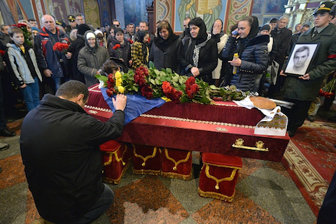 親友為陣亡的烏克蘭傘兵舉行葬禮。(Photo by GENYA SAVILOV/AFP/Getty Images)