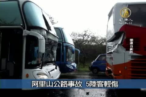 阿里山公路今天發生大貨車、遊覽車疑似追撞意外,造成5名大陸江蘇的陸客受輕傷,送醫治療,原因正調查。