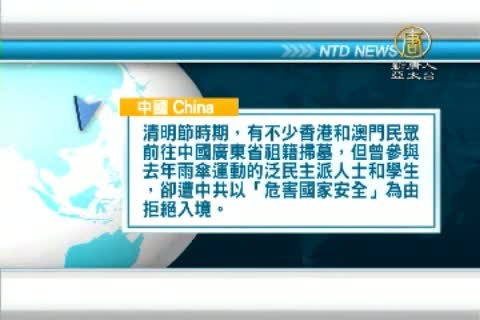 清明節時期,有不少香港和澳門民眾前往中國廣東省祖籍掃墓,但曾參與去年雨傘運動的泛民主派人士和學生,卻遭中共以「危害國家安全」為由拒絕入境