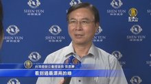淡水藝術舞蹈團 舞團團長 劉紋君:「她把中國的歷史,文化,傳統,表演到整個音樂還有整個空間,藝術,還有做到整個高科技動態天幕,我覺得這個力量是,意境是非常高的,就是神韻的真善忍,才有辦法做到這樣子。我覺得非常的感動。」