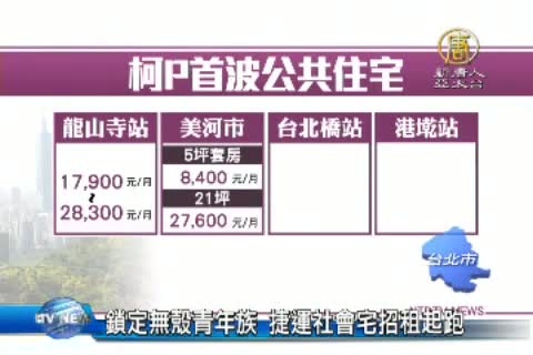 【新唐人亞太台 2015 年 04 月 07 日訊】財經訊息帶您看到,柯文哲選前承諾,台北市第一波公共住宅570戶,從今天起開放申請,民眾可透過網路,線上瀏覽房屋3D照片,或現場進行辦理,而明天開始,也可以現場預約實體看屋。不過社會宅的價格,也不便宜,承租人還得先,掂掂荷包。