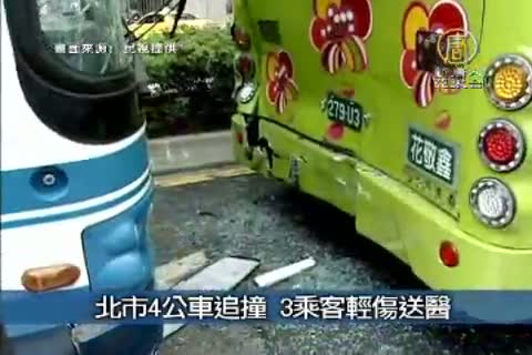 台北市松江路公車專用道今天早上發生4輛公車追撞意外,造成3名乘客輕傷送醫,公車上的行車紀錄器已經在第一時間取下,釐清肇事責任。