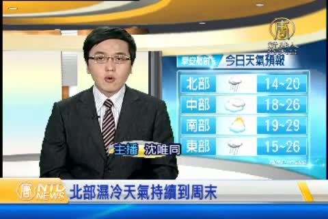【新唐人亞太台 2015 年 04 月 08 日訊】歡迎您收看4月8日的早安新唐人,我是沈唯同。先來帶您關心今天的天氣情況。這周開始明顯比上周冷了許多,很多朋友都覺得好冷哦,但這樣陰冷的天氣還會持續到周末,要提醒大家注意保暖。今天受到鋒面及華南雲雨帶東移影響,台中以北到宜蘭及花蓮北部有短暫陣雨,中南部平地及花東地區平地大致為多雲或陰的天氣。氣溫方面,北台灣14到20度,南台灣低溫18度,高溫則為29度,日夜溫差大帶您一起來看到國際媒體重要訊息。