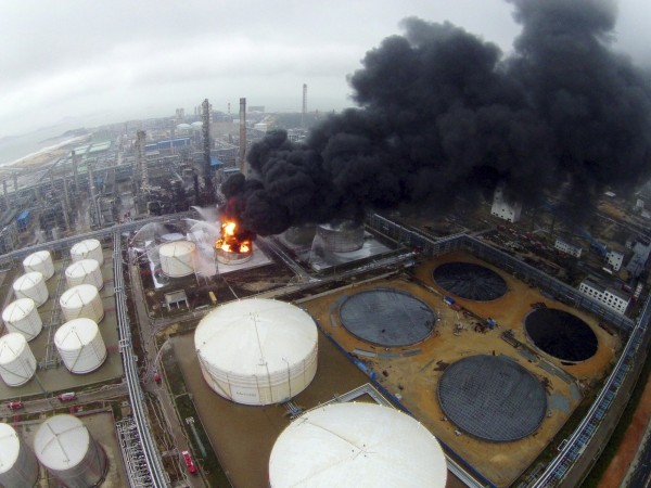 【新唐人亞太台 2015 年 04 月 08 日訊】陸媒「中新網」稱,廠區的「609罐」在今天上午11點5分起火燃燒,火勢兇猛,609罐為輕重整液罐,罐體明顯破裂,是該區第4個燃燒的罐體,儲油量約達1500噸,當局仍不清楚起火原因,正緊急處置中。