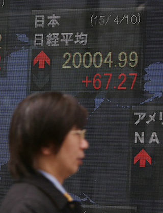 【新唐人亞太台 2015 年 04 月 10 日訊】東京股市今天在美股漲勢及美元走強帶動下走高,開盤上漲0.34%,突破2萬點心理關卡,為15年來首見。