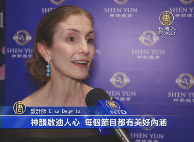 設計師Elsa Degwitz:「神韻啟迪人心,每個節目都有美好內涵,例如神筆的傳說,我喜愛神韻。她在教化人心,不只舞蹈,還有教育內涵。」