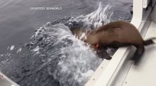 【新唐人亞太台 2015 年 04 月 12 日訊】南加洲的海灘上出現一大批「不速之客」,數以百計的海獅擱淺在海岸上。海洋生物學家和動物營救人員正在極力搶救這些可憐的小海獅。同樣也是救助動物的故事,怪異氣候讓全世界都變了調,不僅人類受苦,連海獅也遭殃。南加洲海灘出現了比以往還要大批的「不速之客」,好幾百隻的海獅擱淺在岸邊,營救人員正在積極搶救,希望幫助牠們早日回到大海的擁抱。