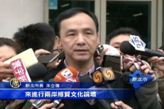 新北市長 朱立倫:「我從就任的一開始就講說,對於這些相關的兩岸交流,我們都會延續,那在幾次跟總統談話的當中,他也是認為說兩岸的關係,從國共或者經貿文化論壇,都是有一些幫助的。」